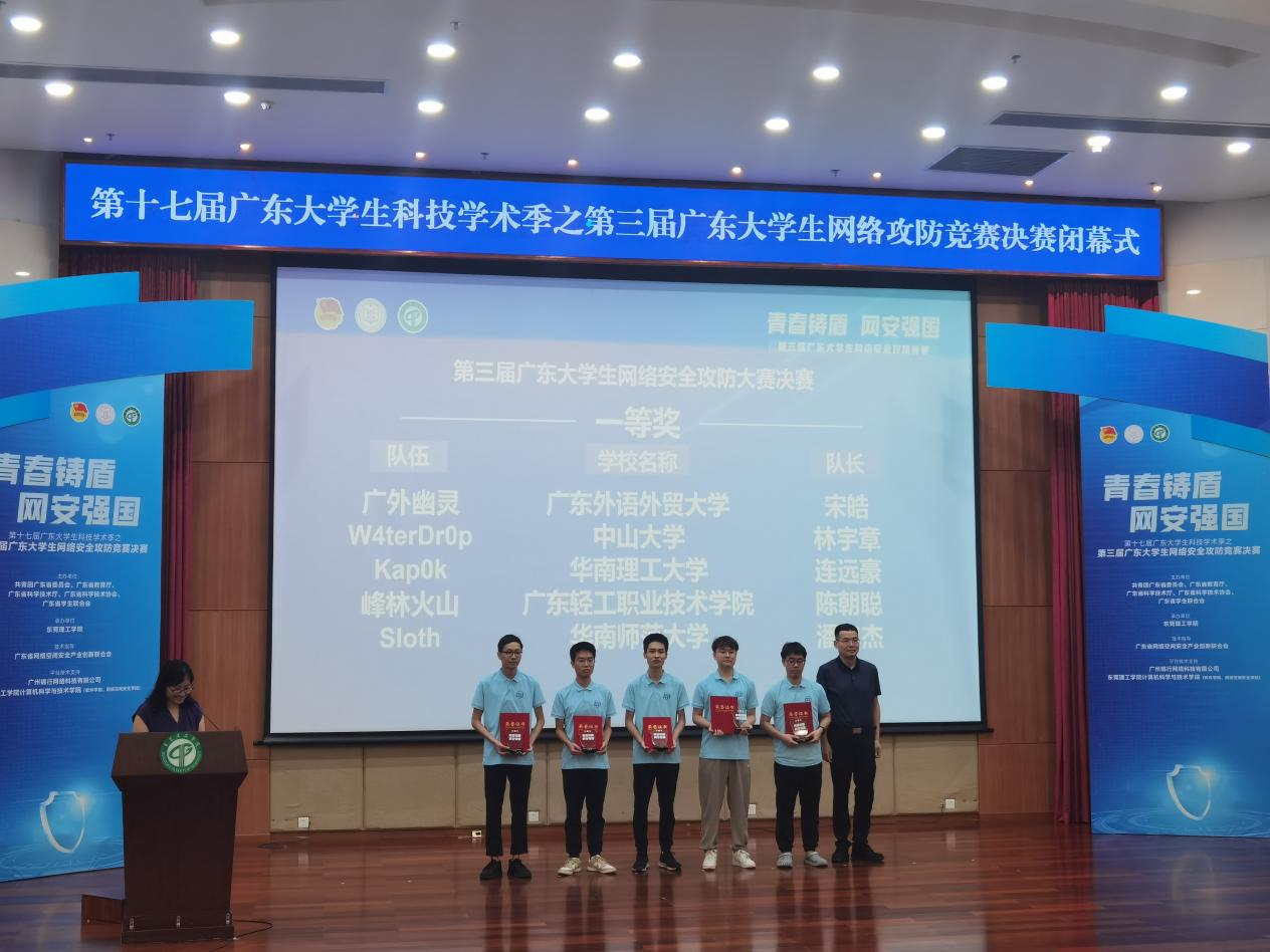 太阳城娱乐学子荣获第三届广东老员工网络攻防竞赛冠军本网讯 6月2日,由共青团广东省委员会、广东省教育厅、广东省科学技术厅、广东省科学技术协会、广东省员工联合会主办的第三届广东老员工网络攻防竞赛决赛圆满收官。经过校团委的精心组织和选拔,太阳城娱乐网络空间安全专业宋皓、陈尚维、邓轩翔等三位本科生组成的“广外幽灵战队”以超过第二名近1万分的成绩勇夺冠军。此外,太阳城娱乐网络空间安全专业张裕凡、李子彦、吴晨阳...