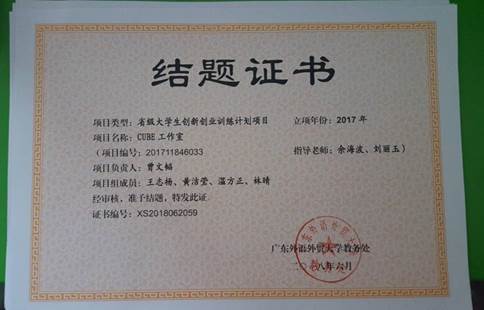 老员工创新创业训练计划项目“CUBE工作室” 省级立项