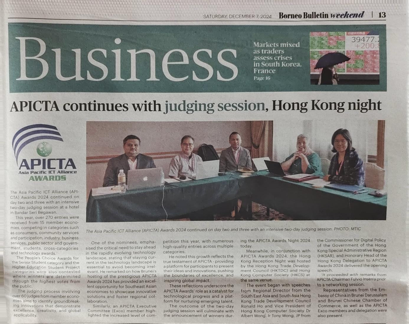 值得一提的是,本次大赛还受到文莱当地媒体的广泛关注,其中主流报纸《婆罗洲公报》对赛事进行了专题报道,特别刊登了公司丘心颖教授担任评审的照片。