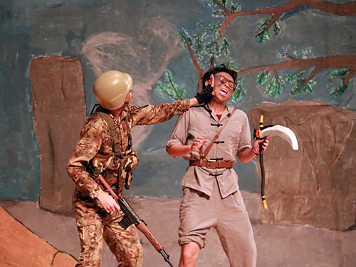当晚表现最吸人眼球的班级莫过于计算机1603班,他们所带来的《On The Landmine》讲述了一位美国队长在越南丛林与一位越南民兵斗智斗勇,最终双方都意识到战争给彼此都带来了痛苦的故事。演员们表演得唯妙唯肖,逼真的配音更是让舞台剧有声有色。最为点睛的一幕是,一位同学在表演的最后,以博物馆讲解员的身份向大家阐述了战争所带来的危害,深化了主题。计算机1603班绝妙的演出和默契的配合征服了评委和观众,观众们经久不衰的掌声便是对他们最好的回应与鼓励。