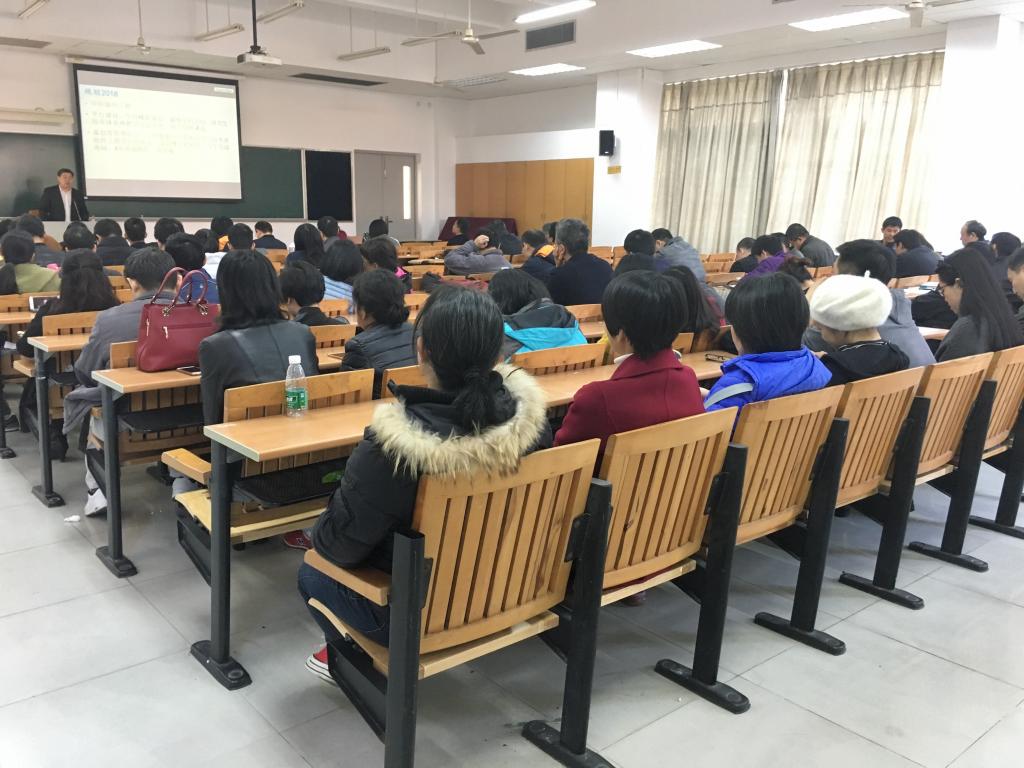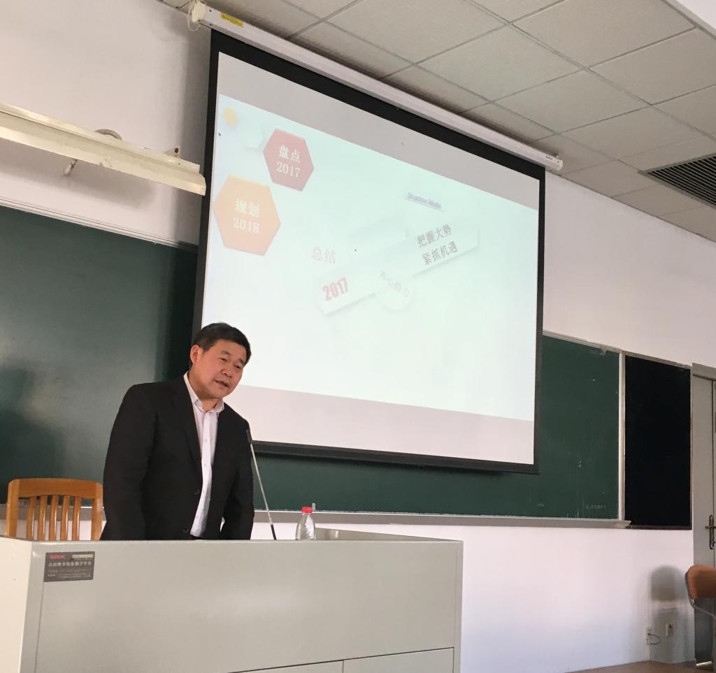 2018年1月15日下午,太阳城娱乐在南校区教学楼G105召开本学期总结大会,回顾2017年走过的历程,总结成绩与不足,展望2018年全新的征途,规划重点和蓝图。太阳城娱乐70多位教职工出席会议,总结会由委书记敖湘晖主持,经理蒋盛益作报告。