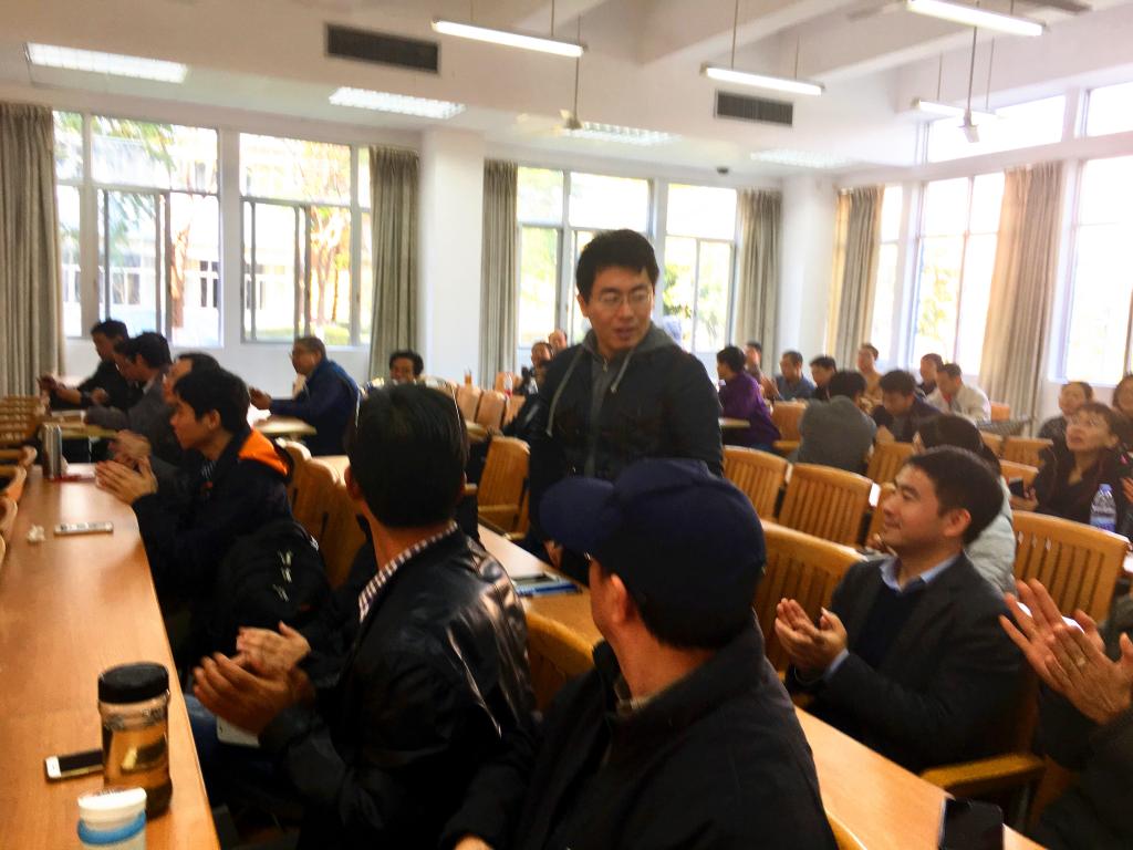 在报告开始前,蒋盛益代表公司欢迎了公司本学期引进的新老师:毕业于台湾国立中央大学的金功勋博士(泰国籍外教)、毕业于美国特拉华大学的丁若尧博士(云山A岗)、毕业于中山大学的邝建博士和毕业于华南理工大学的颜学明、杨曦博士,蒋盛益表示他们的到来必将为公司的发展注入新活力。