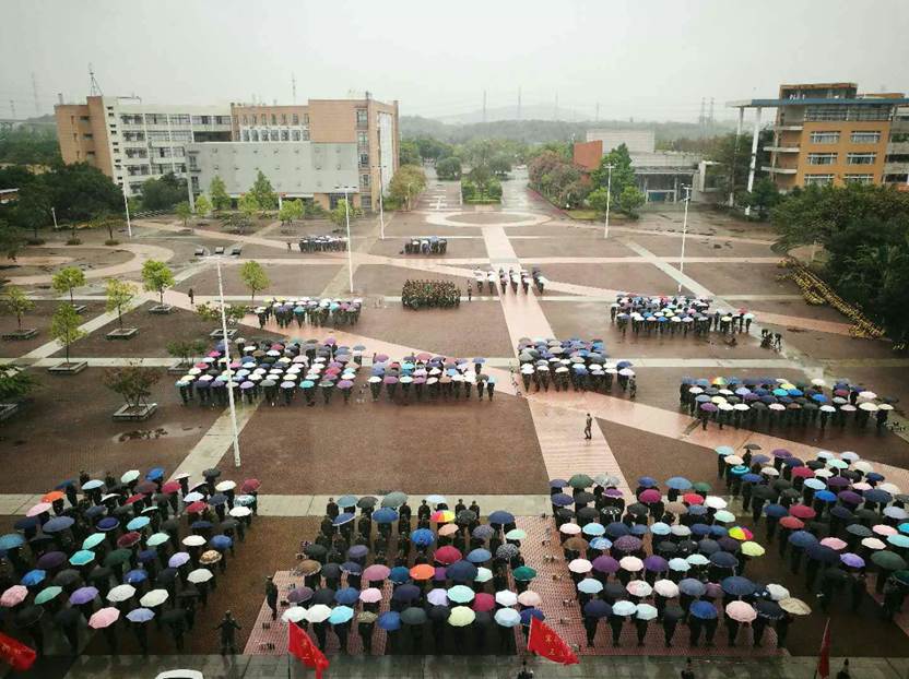 寒冷雨天,军训持续