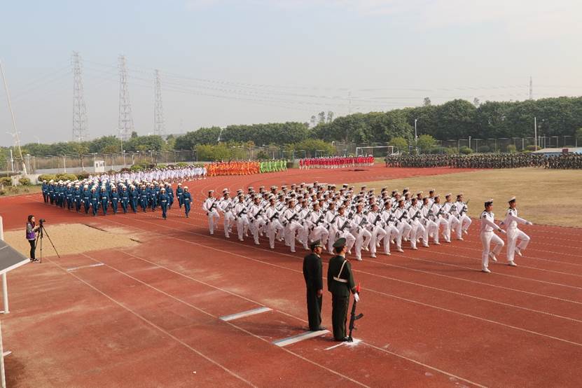 “宝剑锋从磨砺出,梅花香自苦寒来”。经过两周的刻苦训练,太阳城娱乐所在的三个方阵获得了校领导及军训旅领导的一致认可,获得了在军训汇报表演中上场的机会。太阳城娱乐女子方阵身着民兵服,男子方阵身着海军服,向全场领导和观众展现信息学子的风采,获得一致好评;擒敌拳方阵的拳术表演更是震撼了全场观众,他们用口号表达自己的爱国之心:“犯我中华者,虽远必诛!”,让所有人感受到他们的决心和勇气。