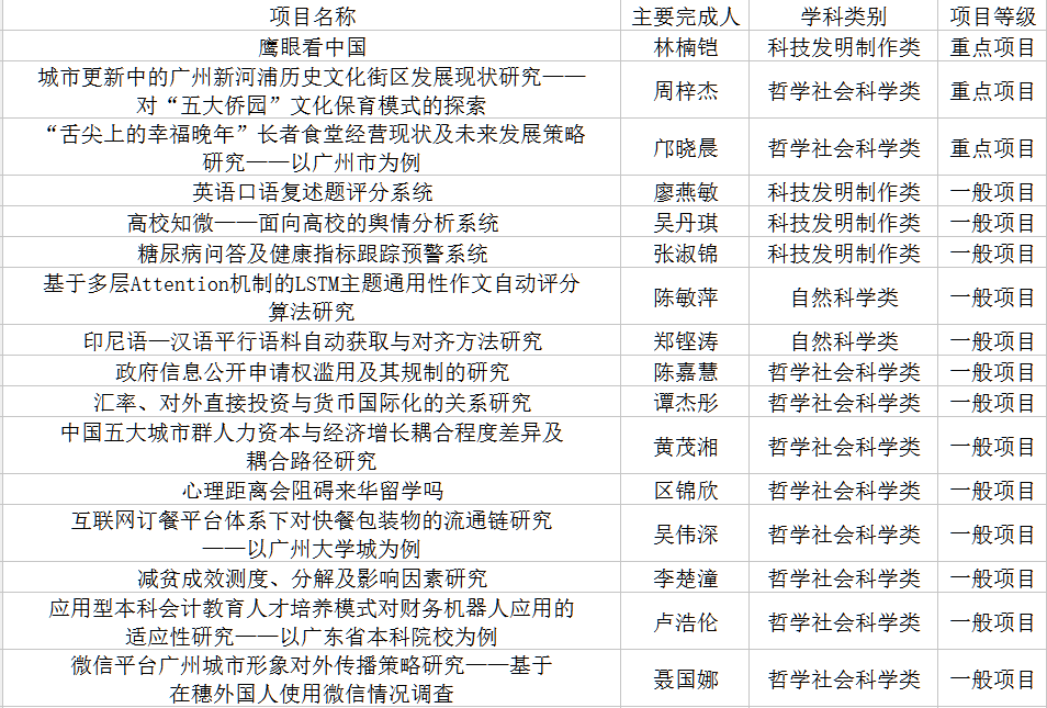 经个人申报、资料审查、广东省专家组评审等层层严格考核,公司成果申报6项2018年“攀登计划专项资金”,包括科技发明制作类4项(“鹰眼看中国”、“英语口语复述题评分系统”、“高校知微——面向高校的舆情分析系统”、“糖尿病问答及健康指标跟踪预警系统”),自然科学类2项(“基于多层Attention机制的LSTM主题通用性作文自动评分算法研究”、“印尼语—汉语平行语料自动获取与对齐方法研究”),其中“鹰眼看中国”为重点项目。