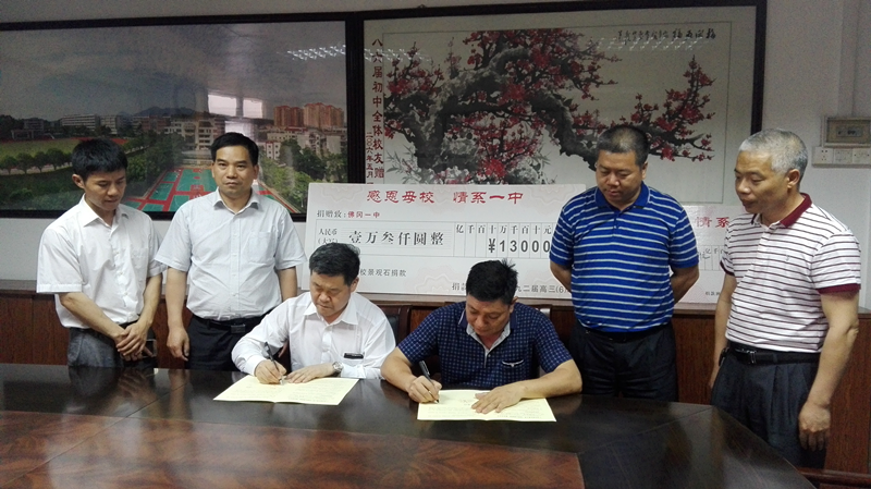 图5.6蒋盛益经理代表公司与佛冈一中签约授牌