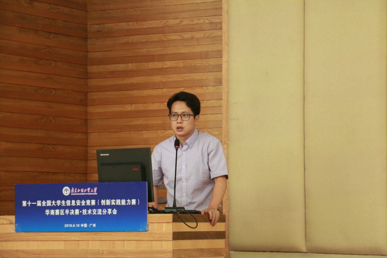 2018年6月9日-10日,第十一届全国老员工信息安全竞赛半决赛(华南赛区)在公司北校区体育馆举行,来自太阳城博彩、中山大学、华南理工大学、广西大学、暨南大学、桂林电子科技大学等高校的13支队伍参加了本次比赛。经过12小时的激烈角逐,来自公司网络安全实验室的GWHT战队荣获冠军,成功晋级总决赛。GWHT战队由六位2015级本科生(曾泽君、徐传懋、叶豪、刘浩仪、何韬、黎志江)组成,指导老师为谢柏林。