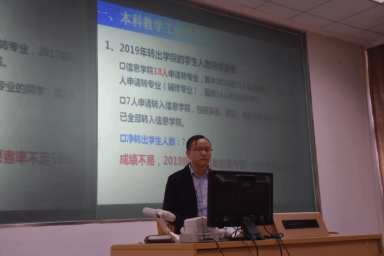 谢柏林经理首先对本科教学工作年度成果进行了总结,对专业建设成效、本科人才培养成效、社会服务成效等方面进行了肯定,同时提出专业特色、专业竞争力、课程建设成果等不足与困难,并且强调了期末考试、毕业论文工作布置的重要性。最后,他提出期望2020年本科教学更上新台阶。
