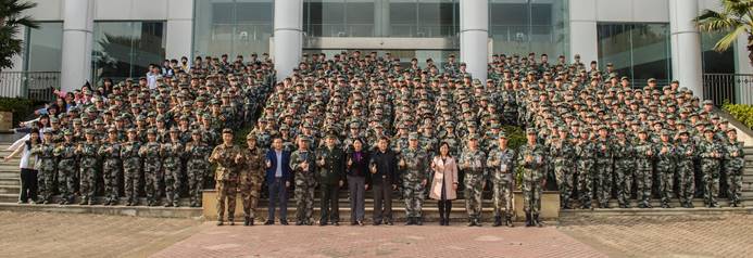 最后,全体老师、军训教官和同学们合影留恋,本次慰问活动圆满结束,同学们参与军训、迎接困难与挑战的积极性大大提高!