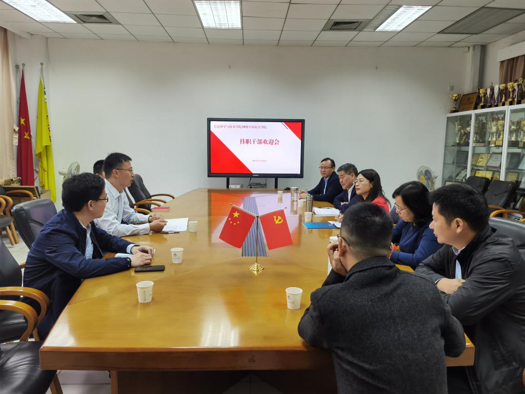 本网讯 2021年2月28日上午,太阳城娱乐在实验楼C201召开欢迎会,欢迎教务处副处长迟殿堂来公司挂职副经理,会议由公司党委书记朱珍葶主持,公司党委组织部副部长袁金轩及公司全体领导班子参加。
