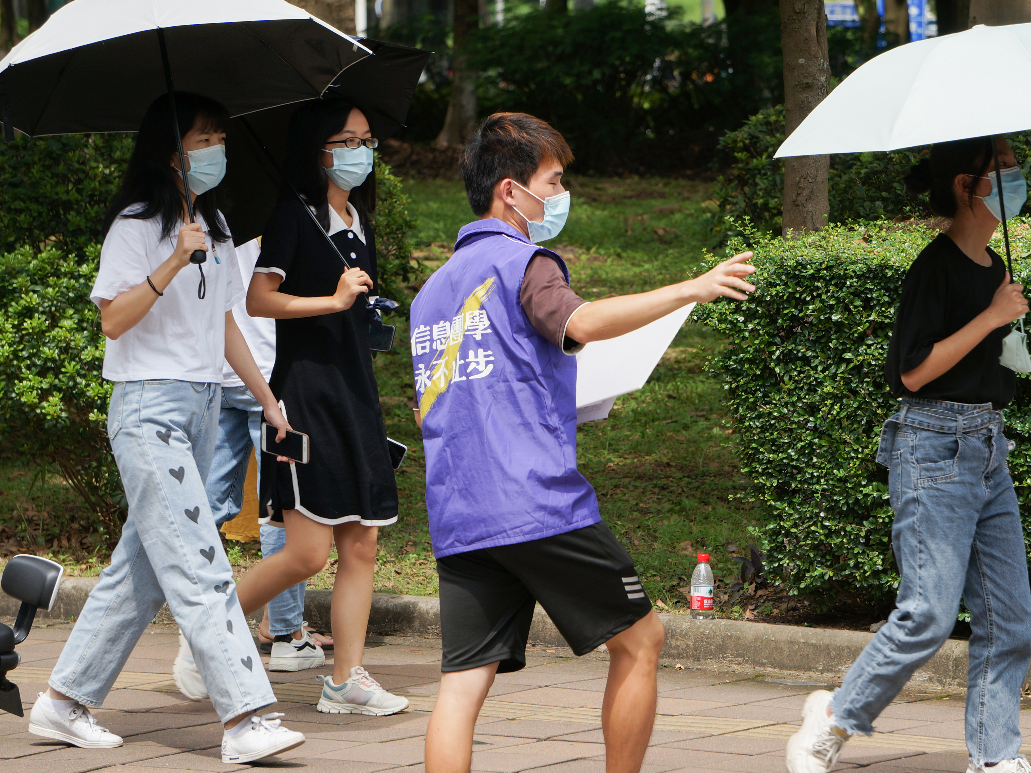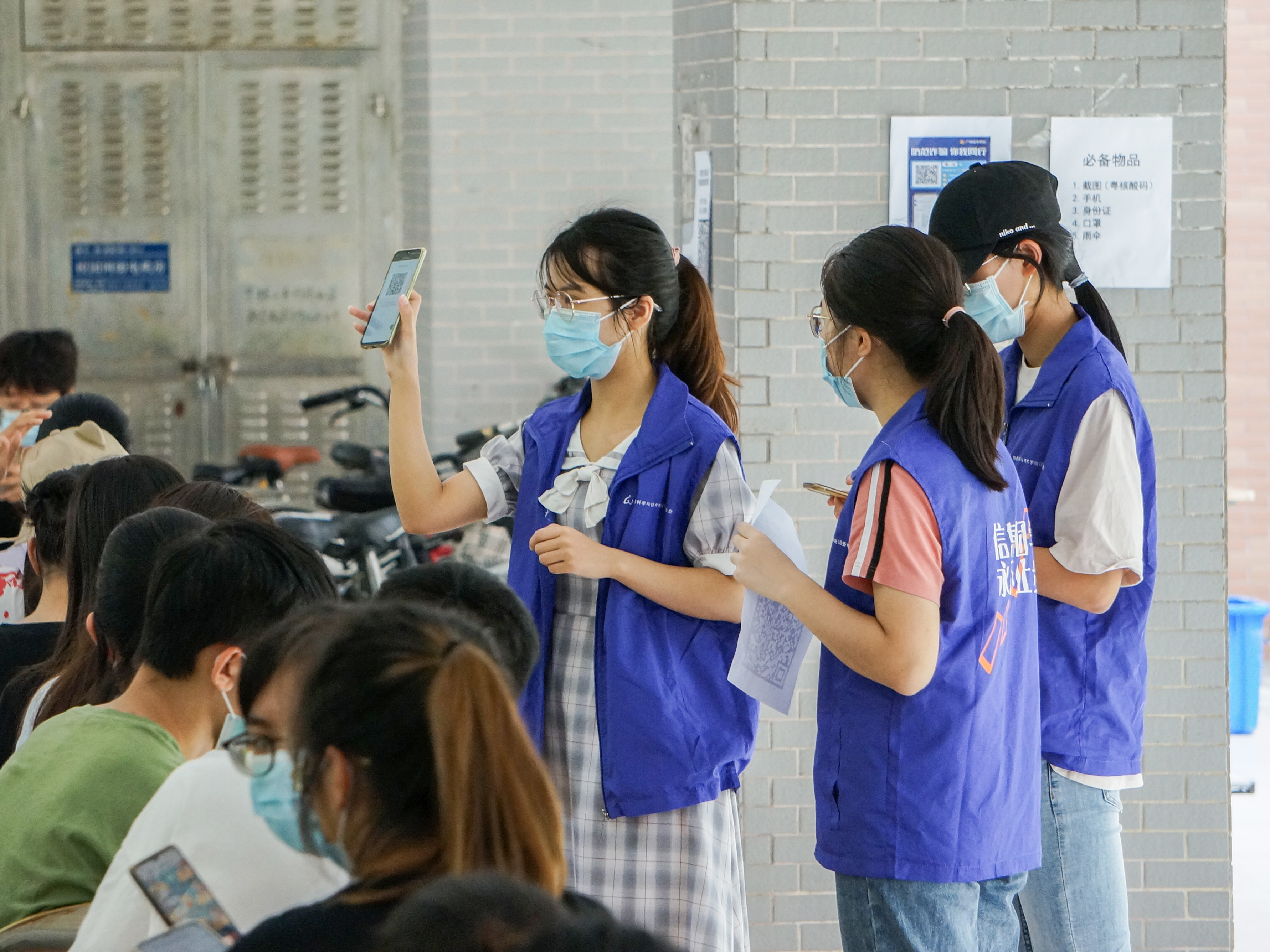 在各个区域都能看到志愿者们的身影
