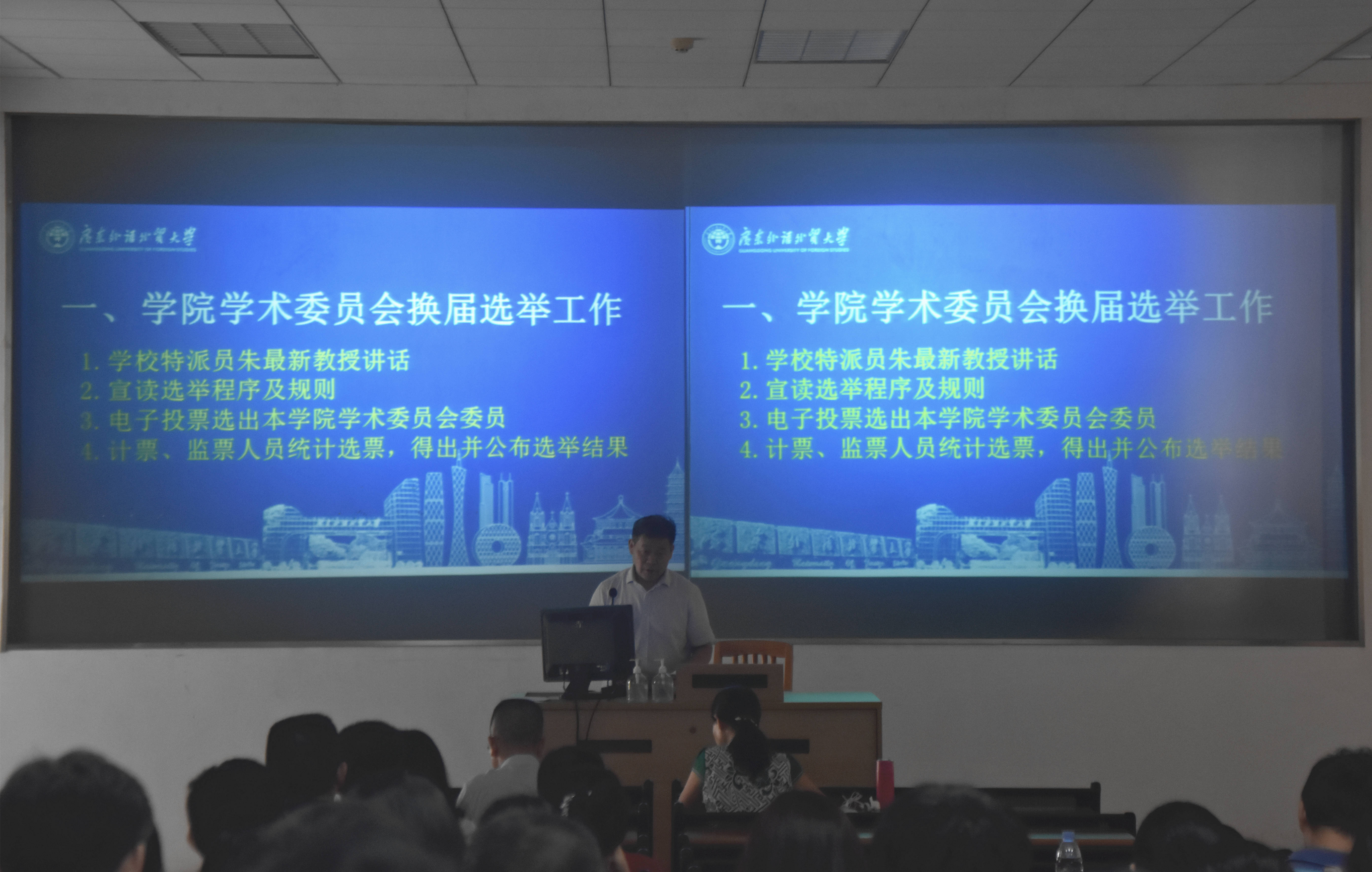根据公司《太阳城博彩学术委员会章程》 (广外校〔2015〕47号)要求和《信息公司学术委员会换届选举办法》,选举工作按规定流程进行。经过现场介绍10名候选人情况,电子投票,计票,宣布计票结果等一系列流程,太阳城娱乐选举产生新一届学术委员会委员:王常吉、丘心颖、申宇铭、刘景发、杜剑峰、李霞、陈仕鸿、唐明董、龚永义(按姓氏笔画排序)共9人。