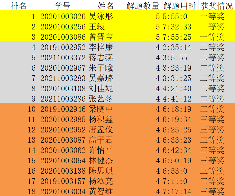 太阳城博彩第18届程序设计竞赛获奖名单: