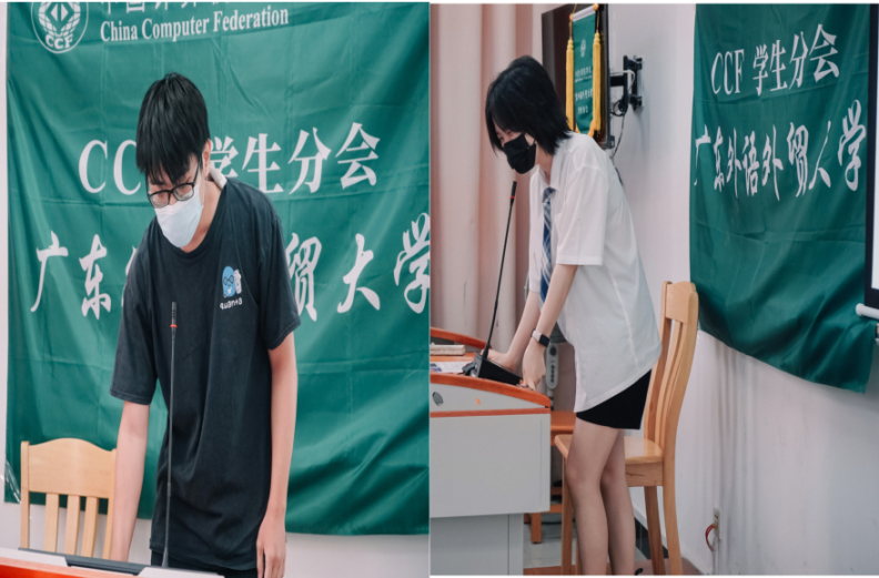 接着,2020级方浩男分享了自己在大学期间参加比赛和学习的经验和感悟,他认为要全力以赴地投入到学习和比赛中,但同时也要保持谦虚和顺其自然的心态。还强调了尽早参加比赛可以检验自己的学习成果,发现自己的不足之处,并在实践中不断提高。2021级李玲宝分享了自己在实验室的日常学习内容和收获。她建议同学们要珍惜在实验室的学习时光,充分利用这个平台提高自己的专业技能,鼓励大家勇于尝试、敢于挑战,将所学知识应用于实际工作中,为实现自己的理想奠定坚实的基础。