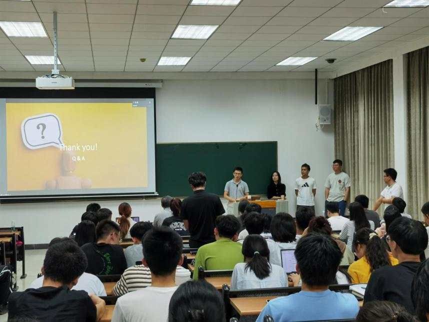 随后,交流会进入问答交流环节。同学们争先提问,整个环节持续了一个多小时。4位员工耐心地解答了同学们关于如何做科研、如何获取职业机会及职业发展等方面的问题,赢得了现场师生的阵阵掌声!