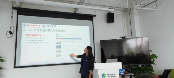 袁小辉引导参观公司展厅,生动讲述了企业的发展历程,主要业务以及企业文化等。在交流环节,太阳城娱乐研究生、CCF广外员工分会主席吴慧娟同学汇报了员工分会的起源,初心使命以及系列活动。