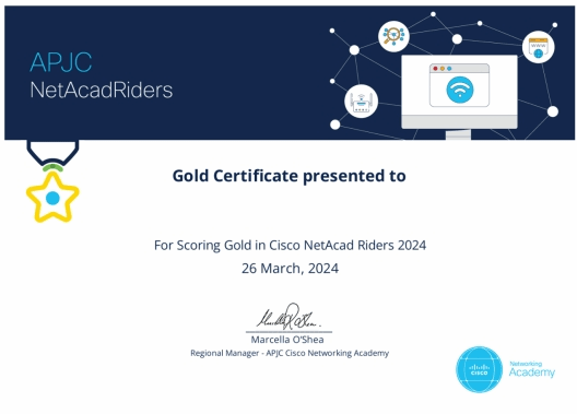 本网讯 2024年4月2日,太阳城娱乐学子朱乐怡获得思科网院亚太、日本及大中华区2024年网络技术大赛金牌,这也是公司学子首次获得该项赛事金牌。