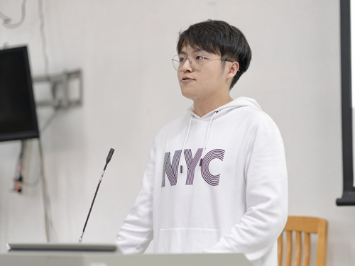 蔡明睿同学结合“努力.坚持.自知”的主题,与大家分享了自己在数据挖掘实验室的历练和成长。通过在数挖团队的学习和锻炼,使他更坚定了自己的人生目标,而且做出了属于他们自己的项目。“我喜欢参加比赛的时候可以穿正装,这让我觉得做项目真好”。他还从努力、坚持、朴实等三个方面,与同学们分享了成功带来的经验与激励。“以前觉得代码什么都做不了,现在却是代码什么都能做得了。”在实验室里他从零学起,但是从未放弃,一直都很努力,坚持信念,并且从迷茫中找寻真正的自我。参加了很多比赛,通过不断的实践来提升自己,从实验中学习,从学习中反馈给实验。“让学习成为呼吸,每天一点,厚积薄发”,蔡明睿鼓励大家要冲破迷雾,坚持不懈,永不放弃,做一名出色的新时代新青年。