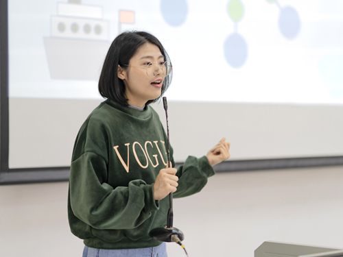 在“学友篇”的分享活动中,蔡明睿、龙晓岚同学分别结合自己的学习实践活动分享了自己的成长、收获与感悟,为同学们启迪思想,指引学习方向。