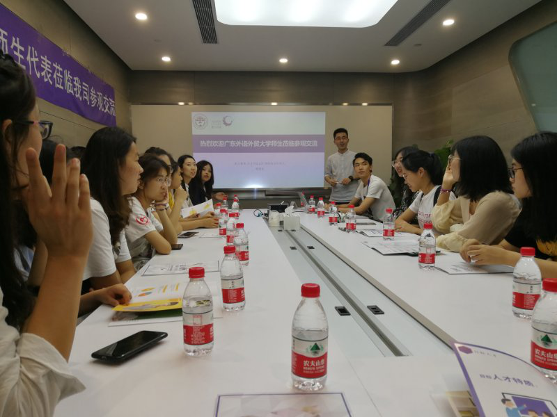 星火人才项目团队培训负责人曹朝钦老师带领同学们参观了企业总部的环境,并向同学们分享了行业选择、职业通道、面试技巧等一系列求职就业知识。