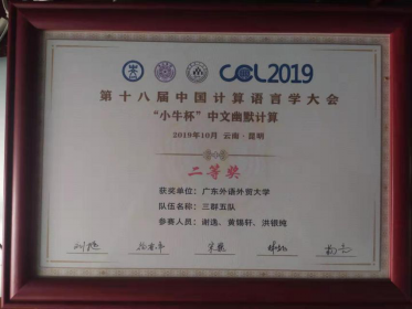 “第十八届中国计算语言学大会”(The Eighteenth China National Conference on Computational Linguistics, CCL 2019)技术评测日前落下帷幕。太阳城娱乐‍‍‍‍‍‍‍‍2019级研究生黄锡轩,2017级本科员工谢逸和洪银纯在蒋盛益教授的指导下,经过激烈的角逐,在众多参赛队伍中,克服计算资源受限的困难,打败了众多企业和高校对手,代表公司取得高校队伍排名第一,总排名第三的好成绩,荣获二等奖。