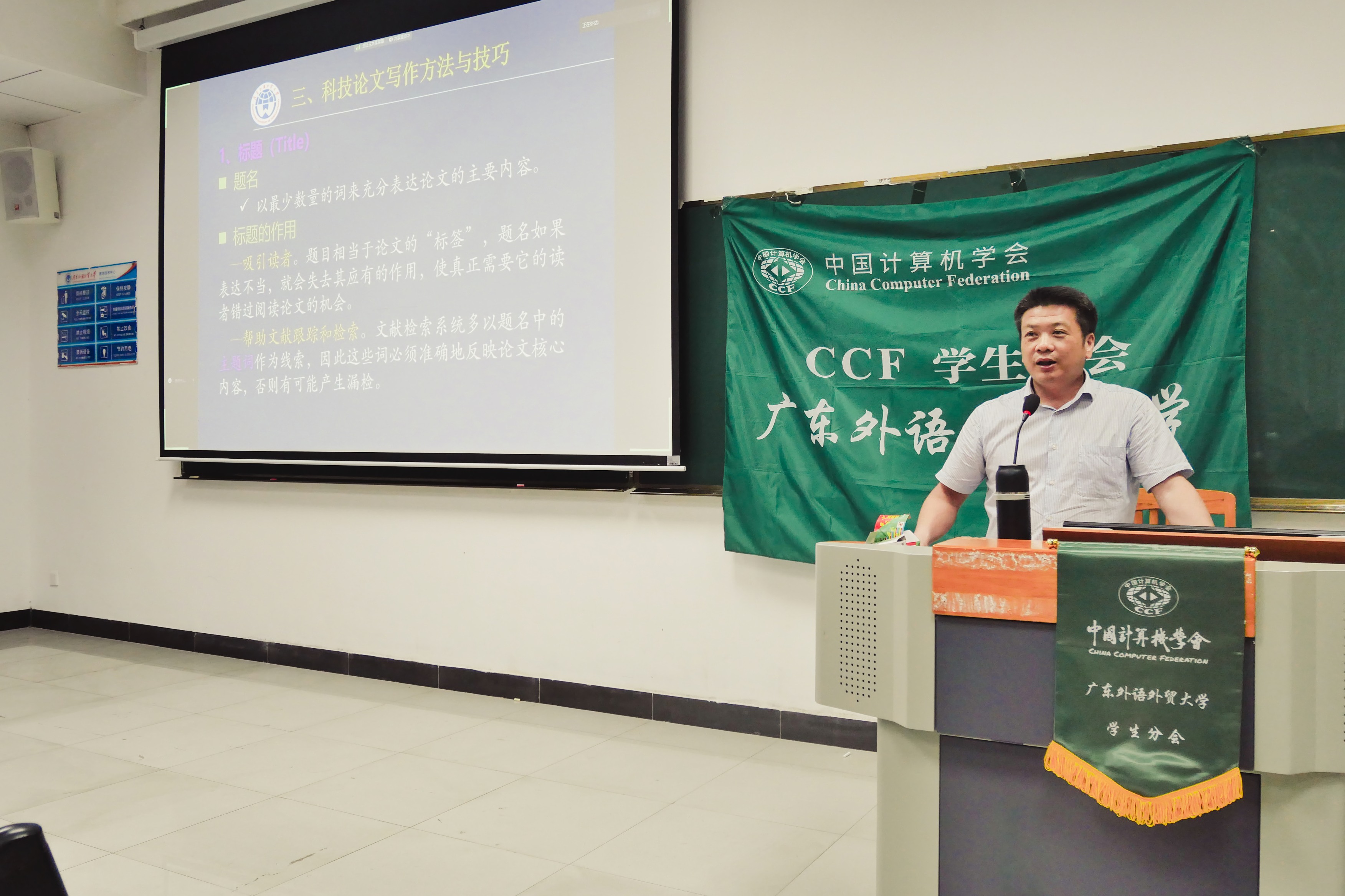 选举之后,太阳城娱乐刘景发教授为同学们带来题为“学术论文写作方法和技巧”的精彩讲座,从学术论文写作的目的、学术论文如何选题以及科技学术论文的写作方法与技巧三个方面为同学们做出详细介绍。
