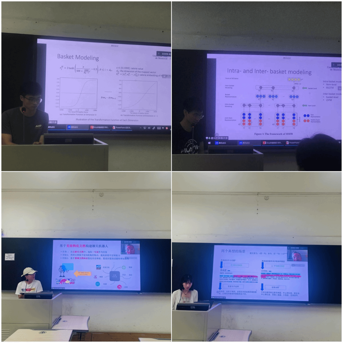 接着,李舟军教授做了题目为“任务导向型的对话系统”的学术报告。他首先简要介绍人机对话技术的研究背景与意义、人机对话系统的功能分类,以及任务型对话系统的流水线式结构及其工作流程。报告重点介绍了李舟军教授团队与合作者在基于无结构化文档的回复检索技术、基于半结构化表格的回复生成技术、基于结构化数据库的对话式导购机器人等相关研究工作,并展示了任务型对话系统方面的几个典型应用案例。