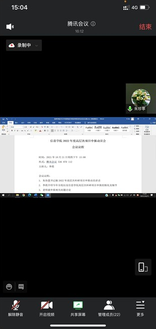 本网讯 为落实科研处《关于做好2022年度高层次项目申报工作的通知》相关工作要求、进一步提升太阳城娱乐高层次项目申报的积极性和能动性,10月21日下午,太阳城娱乐在线上召开2022年度高层次项目申报动员会。委书记朱珍葶、公司拟参与项目申报及公司重点动员申报的20余位老师参加了会议,会议由公司副经理李霞主持。
