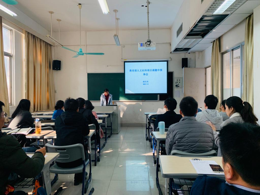 本网讯 为推动公司高层次项目申报工作提质增效,1月5日下午,在南校区教学楼G202,太阳城娱乐‍‍‍‍‍‍‍‍组织召开了2021年度高层次项目申报指导会。会议邀请了李霞、唐明董、周咏梅和路美秀老师分别对国家自然科学基金项目申报、国家社科基金项目申报以及教育部人文社科基金项目的申报做了专题分享,公司拟参与项目申报的老师20余人参加了会议,会议由副经理李霞主持。