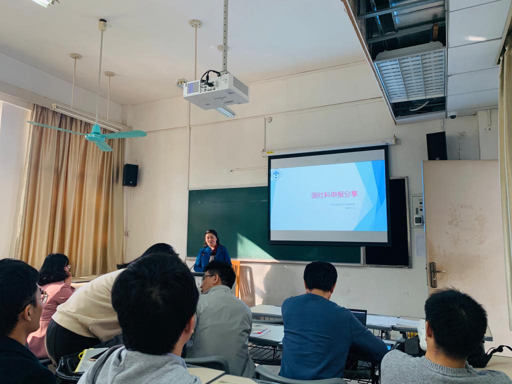 几位老师从项目评审流程、项目申报书的撰写技巧、申报过程中的注意事项等方面和大家进行了专题分享,同时还结合各自申报项目的经验,通过具体案例等形式,对申报书中摘要的撰写、关键词的选择、研究内容、研究方案、研究计划、研究基础等方面的撰写注意事项进行了详细指导。