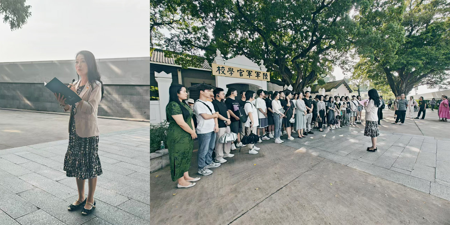 柯晓华书记为大家讲授参观黄埔军校思政课,她说:“要从黄埔精神中汲取力量,坚定理想信念,增强“四个意识”,坚定“四个自信”,做到“两个维护”,不忘初心,牢记使命。”她同时对同学们提出四点希望,希望同学们能够坚定信念,不忘初心;勤奋学习,勇于创新;锤炼品德,修身立德;传承黄埔精神,担当时代重任。
