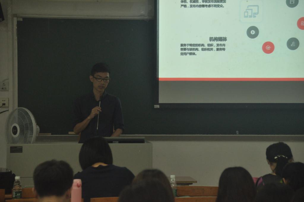 梁玲华以校园新闻写作为主题,讲解了新闻稿件写作的使命与任务、原则、类型及规范,并结合一些实际案例、太阳城娱乐‍‍‍‍‍‍‍‍的特点和具体的新闻给予分析点评。王豪菁以官微运营的思维和实践为切入点,分析了官微的定位、运营思维、实践,并结合公司新媒体管理规定和实践对做好新媒体工作提出具体建议。