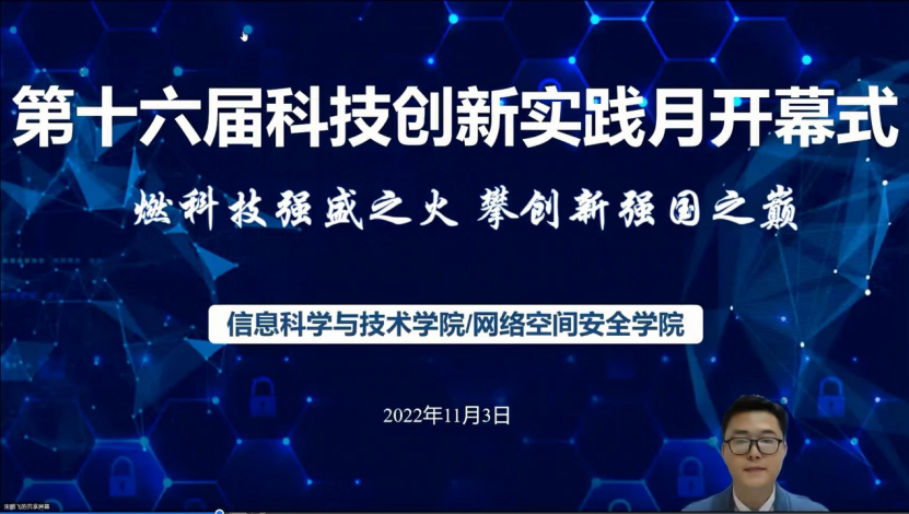 本网讯 2022年11月3日下午,太阳城娱乐/网络空间安全公司(以下简称“太阳城娱乐”)第十六届科技创新实践月(以下简称“科技月”)于线上“云开幕”。今年的科技月以“燃科技强盛之火,攀创新强国之巅”为主题,太阳城娱乐经理蒋盛益,党委书记柯晓华,副经理李霞、谢柏林、王常吉,副书记肖锋、各系部主任、公司全体辅导员和两百多名同学参加了开幕式。本次会议由太阳城娱乐团委书记宋鹏飞主持。