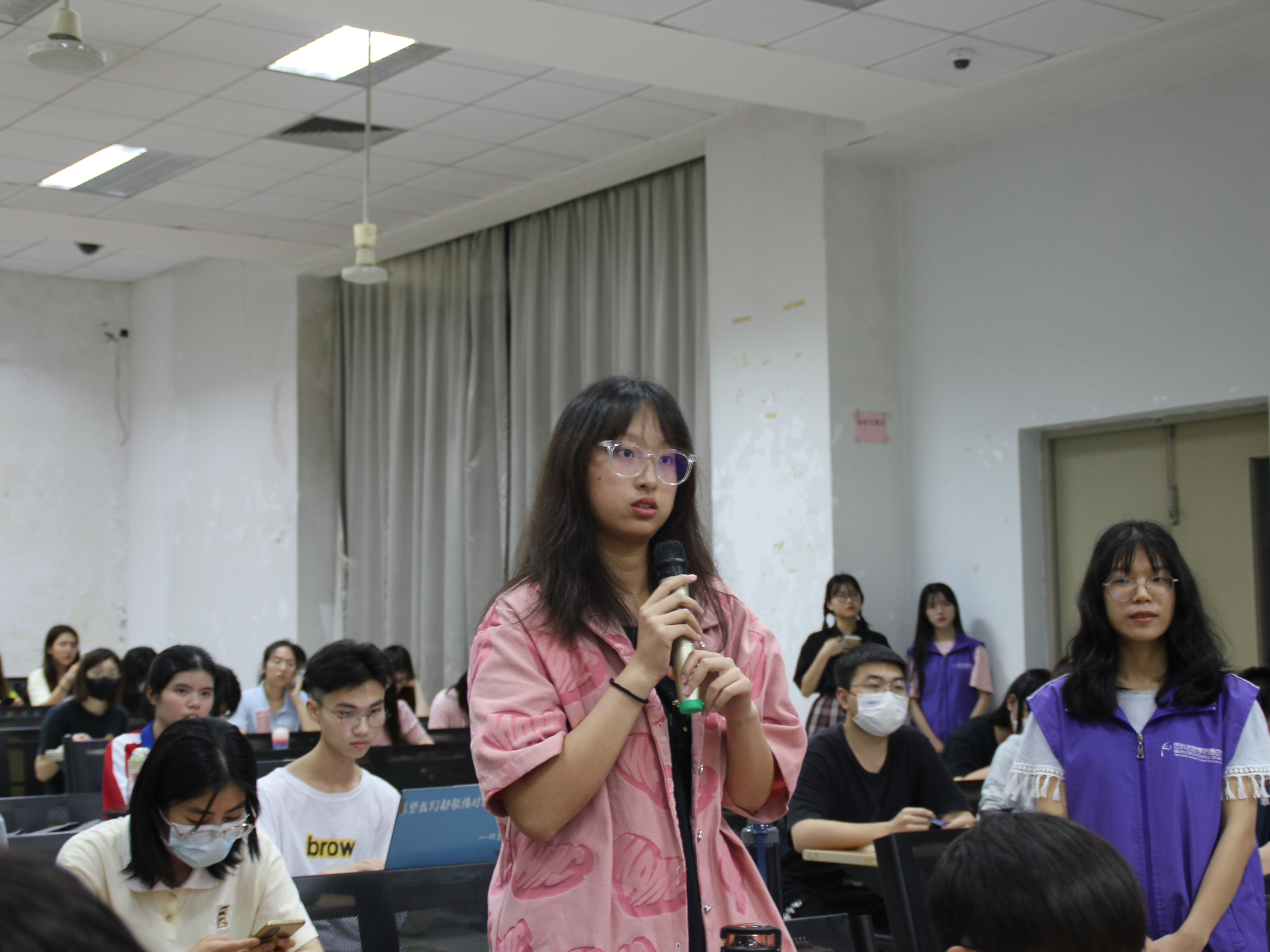 宣讲会的最后一项进程便是答疑环节。首先工作人员对先前收集到的问题进行回答,其中包括参与调研活动的形式、考察地点、团队成员构成、院队和普通队伍队长的面试内容、条件要求以及活动经费等相关问题。接着,工作人员对现场观众提出的问题进行答疑和补充。