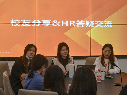紧接着的是员工分享和HR答疑环节,在员工分享自己的在校经历以及在三七互娱的工作经历后,同学们针对三七互娱游戏运营开发和发展踊跃地提出问题,通过工作人员悉心的解答,同学们学习到了丰富的相关知识,例如一款游戏从构思、开发到上市的流程。
