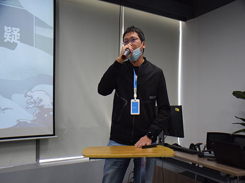紧接着的介绍环节由君海网络科技有限公司开发的《蚁族崛起》宣传视频拉开序幕,工作人员为同学们简单介绍了公司的基本情况,包括发展情况、团队简介、公司版图、业务成果、核心产品、自研业务、海外发行、合作客户、文化活动和周边等等,而后还有企业文化体系包括企业使命、愿景、战略等信息的相关介绍。介绍环节的最后,由公司对应部门的技术大咖为同学们分享了包括前端、服务端、技术中心背后的相关运作以及日常。在介绍环节以及技术大咖的分享答疑环节之后,同学们对于游戏公司的运作包括开发和研发又有了更进一步的了解。