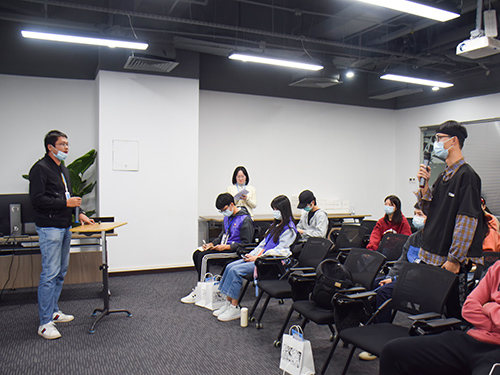 到达目的地后,企业工作人员为每一位同学送上精心准备的小礼品,简单地介绍了一下此次参观活动流程,随后带领同学们大致参观了公司的布局,包括前台、活动墙、开发部、设计部、吧台休闲区等等。与游戏角色相关的周边几乎遍布了整个公司布局,彰显着游戏公司特有的生机和活力。在参观过程中,同学们也在休闲娱乐区体验了娱乐设施,气氛轻松愉快。