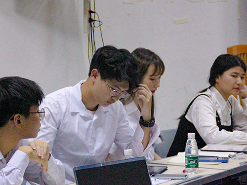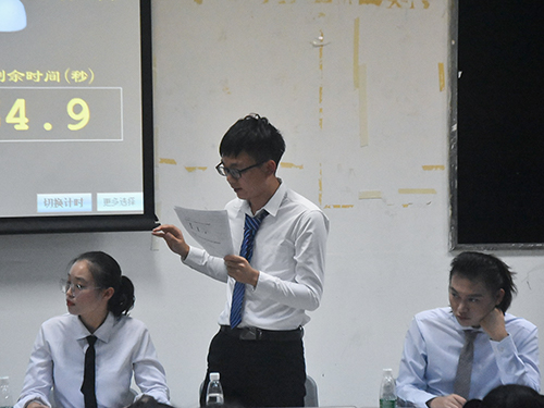 而后进行的三辩盘问环节与自由辩论环节更是让观众直呼精彩,正反双方就“熬夜仅仅是自己的选择还是社会压力导致”“当代人熬夜会时做什么”“熬夜怎么缓解压力”等问题进行了辩驳,双方保持敏捷的思维,层层逼问,各不相让,他们敏锐的反应能力和强大的表达能力也赢得了观众激烈的掌声。辩论赛最后,双方四辩总结陈词,理顺了此场比赛的辩论思路。