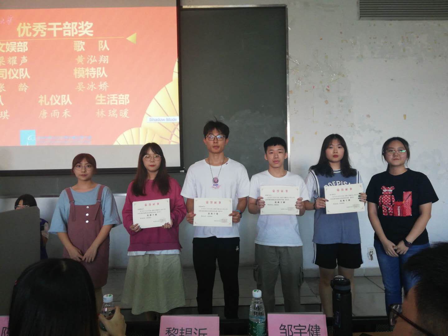 信息部、宣传部、联络部、实践部、组织部颁优秀干事奖
