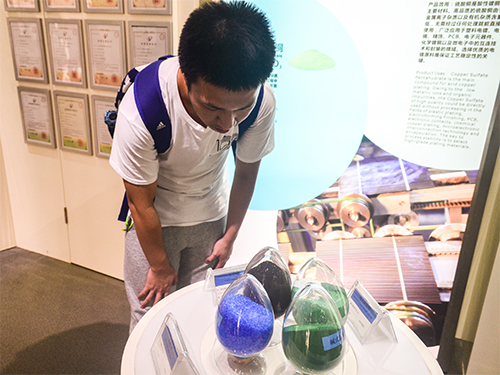 第二站,广州科城环保科技有限公司。在工作人员的讲解下,同学们了解了该公司关于电子电路板等含有重金属的材料的回收、提取和利用的过程。通过参观了公司的实验室,同学们还感受到了该公司在材料学、化学、湿法冶金及水处理方面积累的技术实力。在参观过程中,有同学不禁感叹道:“小小的实验室中有大大的能量,帮助人们化废为宝,创造一个更加绿色的工业生产环境。”