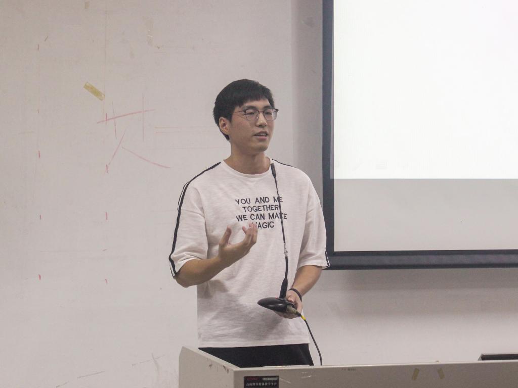 在主持人精简的开场白之后是张佳钦的讲话,他讲述了他对信息团学的热爱,表示本次举行信息团学表彰大会,并非为了强调权术,而是为了往届信息团学干事们的辛勤劳动表示了感谢与肯定,并以此为榜样鼓励现任干事以往届干部、干事为榜样,使个人未来与信息团学的未来都有更加广阔的可能性。