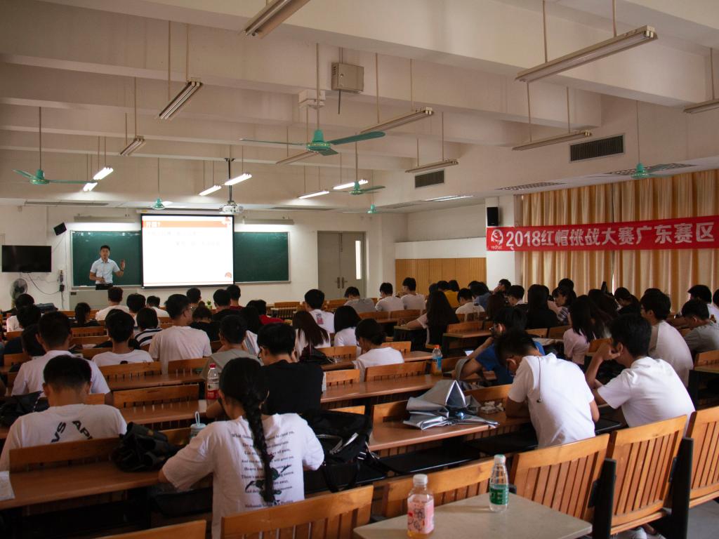 张超老师为同学详细讲解红帽挑战大赛的规则及意义,生动地为同学们讲解“开源”的定义,同时邀请同学来回答。他认为“开源”不仅仅指物理意义上的开放源代码,更有精神层面上开放,包容的意义,并认为“开源”乃时代的趋势。随后莫景龙作为广东赛区的比赛主要联系人,鼓励同学们积极参加比赛。