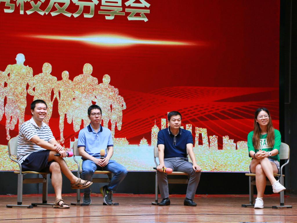 在麦培年副书记主持的第二个环节——优秀员工经验分享会中,员工丘世阳、文曦畅、徐汉彬以自己的经历和生动的语言与新生们分享了自己成功是的经验,并在最后的互动交流环节耐心解答新生的问题。