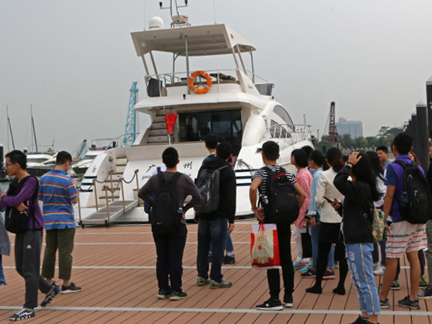 最后,同学们参观南沙游艇会,南沙游艇会的会所便是电影《美人鱼》的取景地点,故同学们对该环节十分向往。到达游艇会后,工作人员带同学们进入大厅,在游艇会模型旁进行详细的介绍。众人听得津津有味,对外面的船坞及游艇更加好奇。随后,工作人员带领同学们下到船坞近距离观察游艇。尽管不能登上游艇,但同学们的好奇心仍得到了满足。