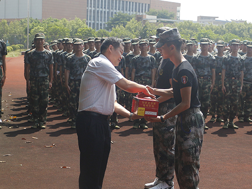 本网讯9月5号上午,思科太阳城娱乐领导亲自莅临军训现场,对顶着烈日军训的各位新生及他们的教官们进行了亲切的慰问。本次到临现场的有思科太阳城娱乐经理蒋盛益,党委书记敖湘晖,党委副书记麦培年,团委书记兼15级辅导员谢石顺,16级辅导员高男和张文萃,以及团学干部和各班班导。本次的慰问不仅给新生们带来充满欣赏性的舞蹈和歌曲,还带来了清凉可口的加多宝来给他们去除炎夏的燥热。
