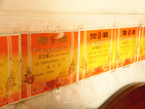 因为北陡镇不大,所以孩子们大都自己徒步回家。队员们跟着黄慧娜小朋友的脚步,来到了一座房子面前。房子外面是一个小花园,屋子里非常整洁干净,墙上除了挂着几幅字画之外,还贴着她和哥哥从小到大在公司获得的奖状。通过询问得知她的父亲和哥哥是当地很有名的医生。“娜娜她啊,不仅在公司表现积极,从一年级开始一直是班长,课余爱好也很丰富,喜欢钢琴、绘画,还有跳舞呢。”黄妈妈自信地讲道。“她还说,她希望自己像爸爸一样成为一名优秀的医生。”不过在整个谈话过程中家长都表现出对孩子学习的担忧,尤其是数学和英语,认为公司的团队力量欠缺,而自己作为父母也不能进行有效的辅导。家长也提到,现在很多小员工一放学回家就喜欢玩手机,不按时完成老师布置的课后作业。