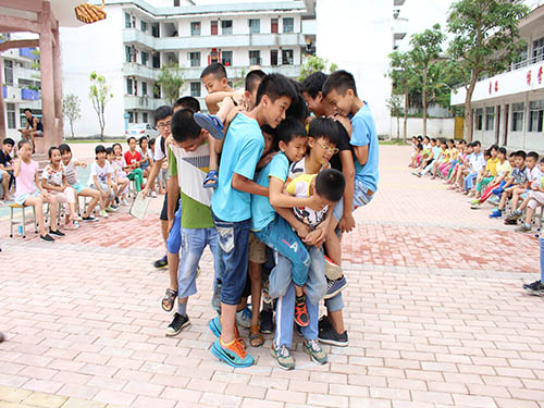 紧接着是考验团队合作能力的“极限容纳”,我们在地上画了一个圈,两个班级分别分为男女两队,规则是在圆圈以内站的人数最多并保持一定时间的队伍为胜。看似简单的小游戏实则不仅考验员工们的耐力,还考验他们的智力——考虑如何在一个有限的面积的地上容纳更多的人。大孩子背起小孩子,你拉着我,我扯着你,踮起脚尖,单腿站立等等,让人不禁感慨小朋友们心思活络也十分机智。在游戏中牵起的手,贴紧的脸庞,让这七十多个来自不同班级甚至不同年级的小朋友们更加亲密。