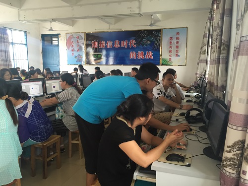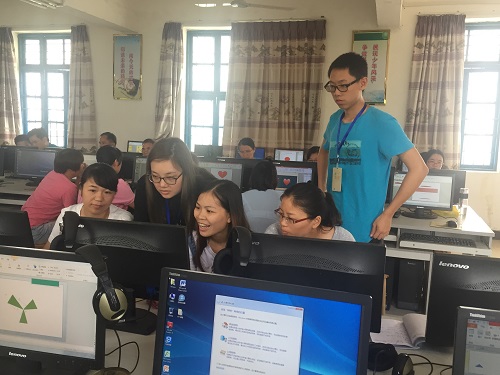 本网讯2016年7月12日,在结束了连绵的阴雨天气后,久违的阳光洒到了肇庆市怀集县大岗镇这片充满乡土气息的土地上。尽管今天大岗中心小学的员工们放假一天,热闹不已的小学也因此显得十分安静,但我们盛夏律动三下乡服务队的步伐仍未停下,大岗中心小学及大岗中学的教师培训课程依然如火如荼地进行着。