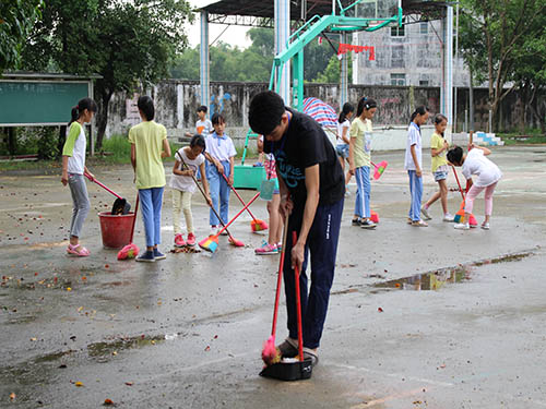 接连几天的大雨,让公司的地上布满了落叶。所以队员们带领着小朋友们开始了早上的扫地“之旅”。队员们和小孩子前往各个不同的地方,并且分工合作、相互配合。当队员们把落叶聚到一处,小朋友们便立即拿着簸箕把落叶倒到垃圾桶里,等到满了就有人自动自觉地拿去倒到垃圾场里。我们和员工扫遍了公司的各个角落,即使每次扫完都会有一些落叶跑到了簸箕底下,但是其他人待会也会再扫一遍,这样来来回回扫了无数次后,公司就像焕然一新一般,从萧瑟变成了生机勃勃。而不仅仅如此,在这个过程中,队员们和小朋友逐渐融为一个整体,互相帮助,一起体验团结的快乐。