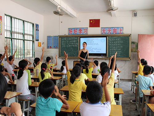 紧接着是趣味音乐课。彭盛旺老师先给每个人发了一张乐谱,让同学们熟悉一下旋律。他先给同学们分析了什么是四分音符等,并教给他们区分的方法。紧接着,重头戏来了。彭盛旺用手一点一点地打着拍数,伴随他他那低沉的声音传入每个小孩子的耳中。尽管可能因为害羞或者是第一次接触,小朋友们唱的不连贯,但是在他一遍又一遍地重复下,小朋友们开始唱的有感情起来,所有人投入其中,欢快的歌声一直没有停止。最后,更是以歌词中最后一个字“嘿”响亮地结束。